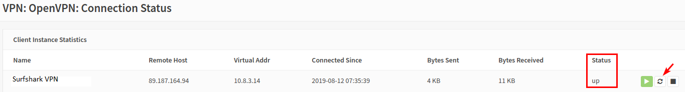 23. Navigate to VPN > OpenVPN > Connection Status and it should state that the service is “up”.