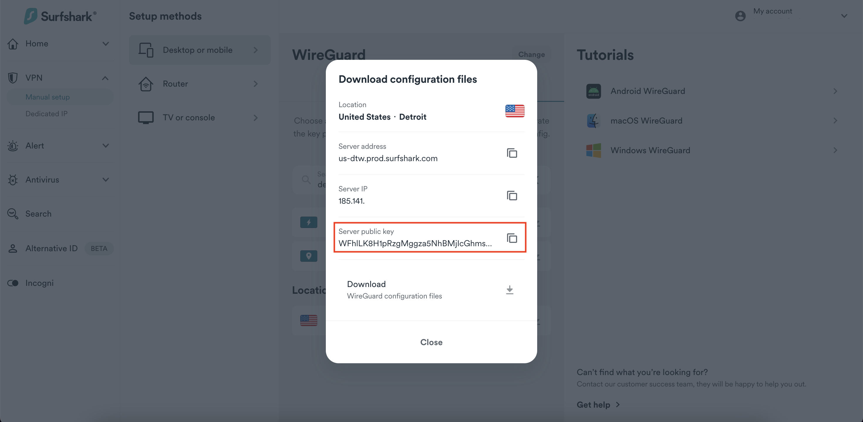 Choose a Surfshark server