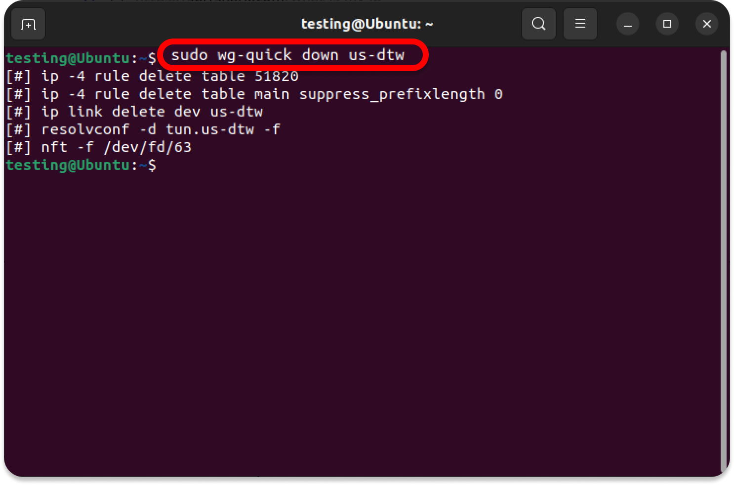 sudo wg-quick down us-dtw