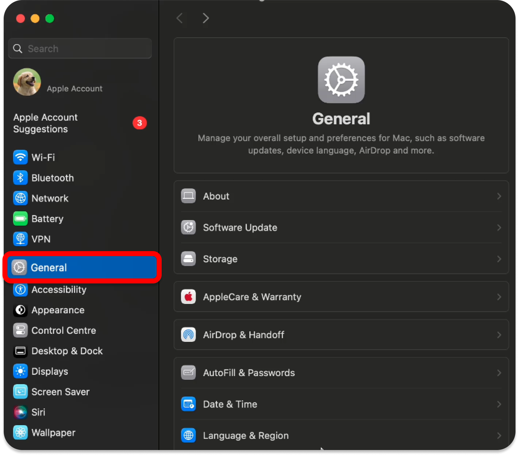- Open Settings and click on General.