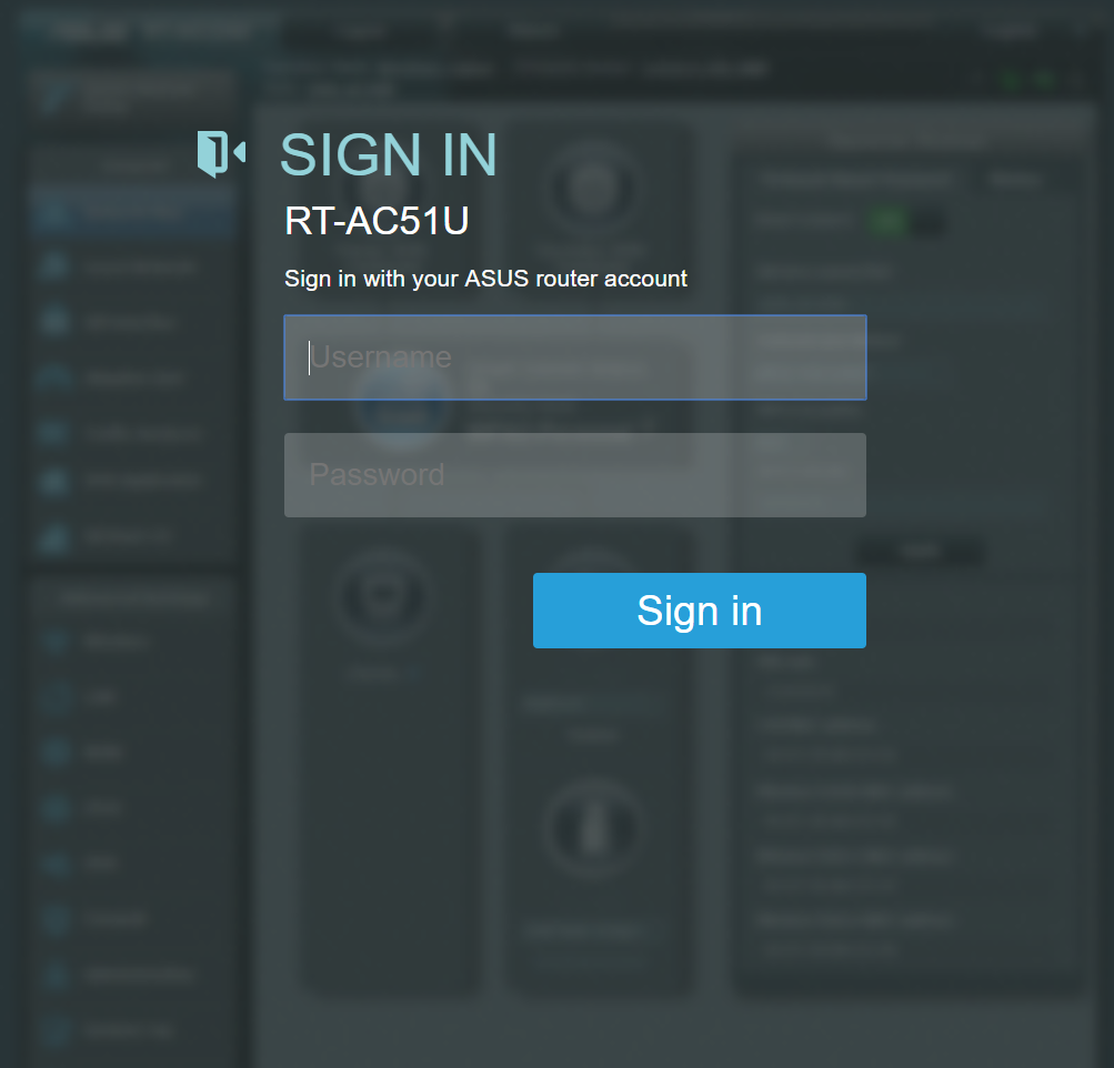 ASUS router login screen prompting for username and password on model RT-AC51U.