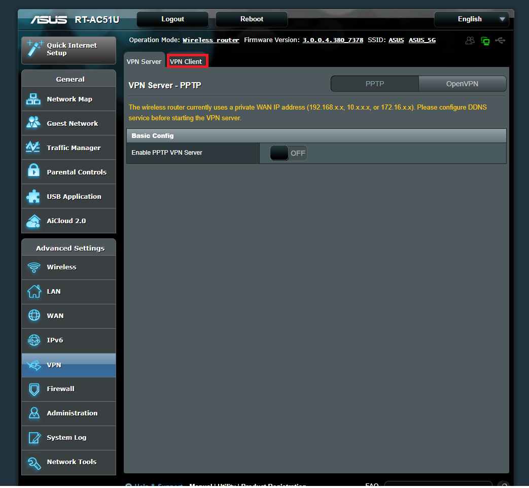 NOTE: If you have updated your Asus router's firmware and have VPN Fusion instead of VPN Client available, set up OpenVPN on Asus VPN Fusion or set up WireGuard on Asus VPN Fusion.