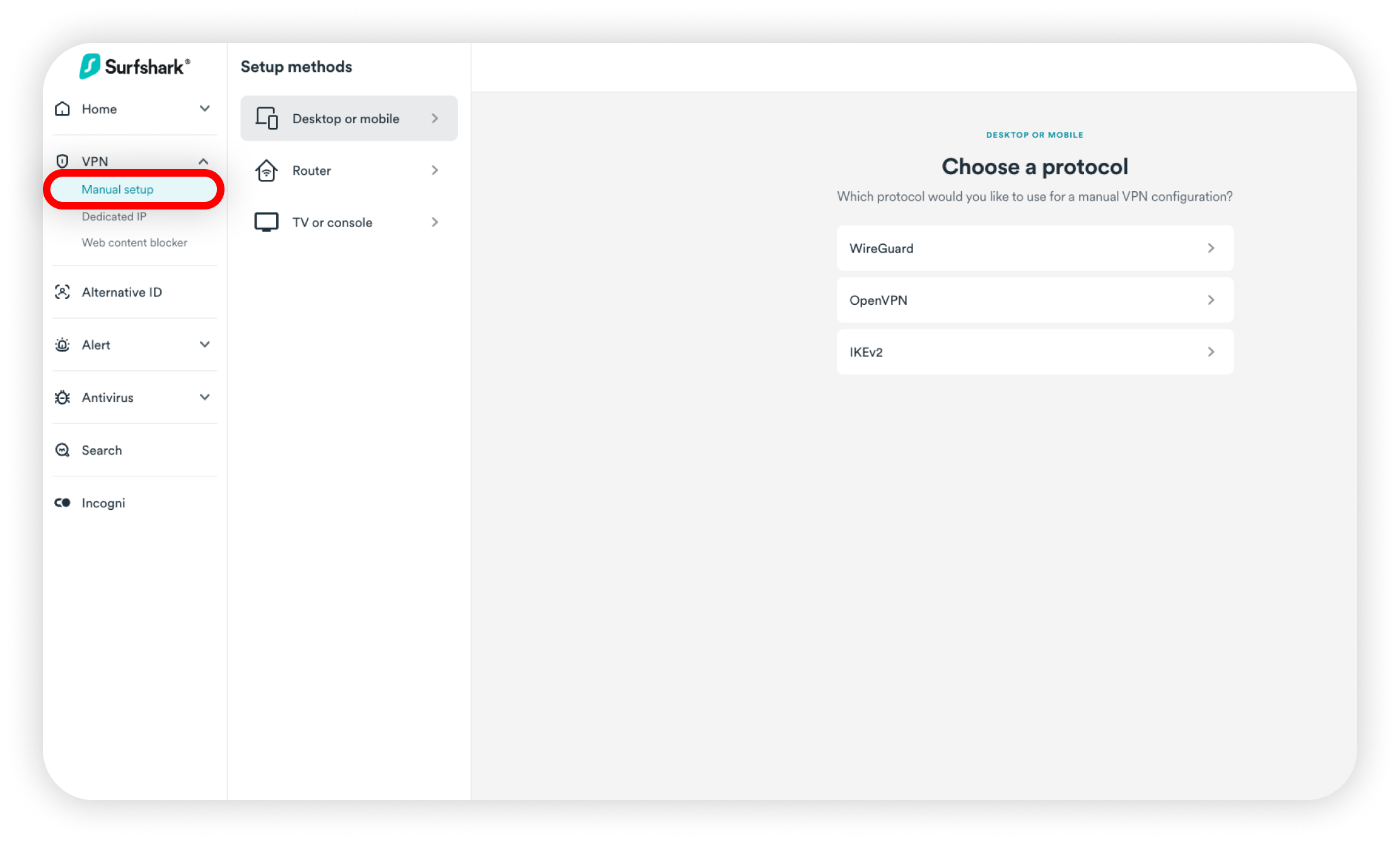 To proceed, you will need a computer running macOS and an active Surfshark subscription. If you don't have one yet, you can find the available plans on Surfshark's pricing page.