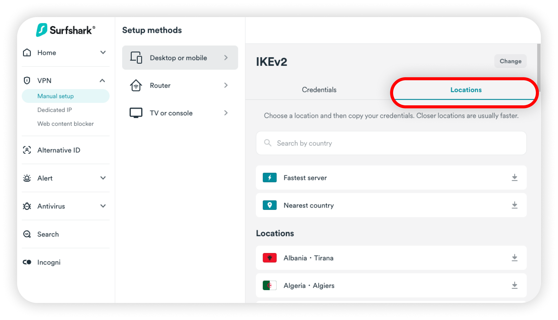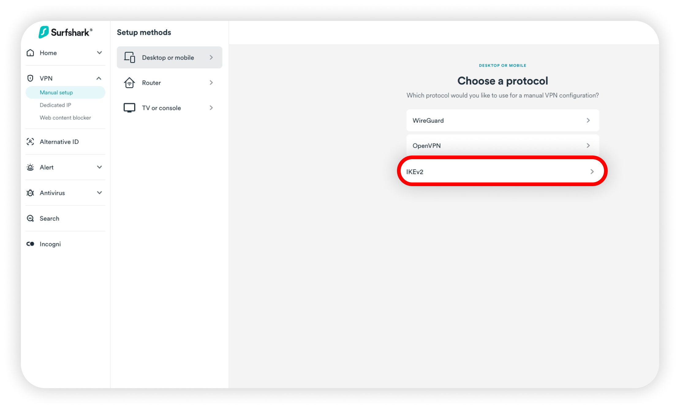 This guide will show you how to set up a manual IKEv2 connection on your macOS device. IKEv2 can help you connect to Surfshark servers in restricted network countries or on older macOS versions.