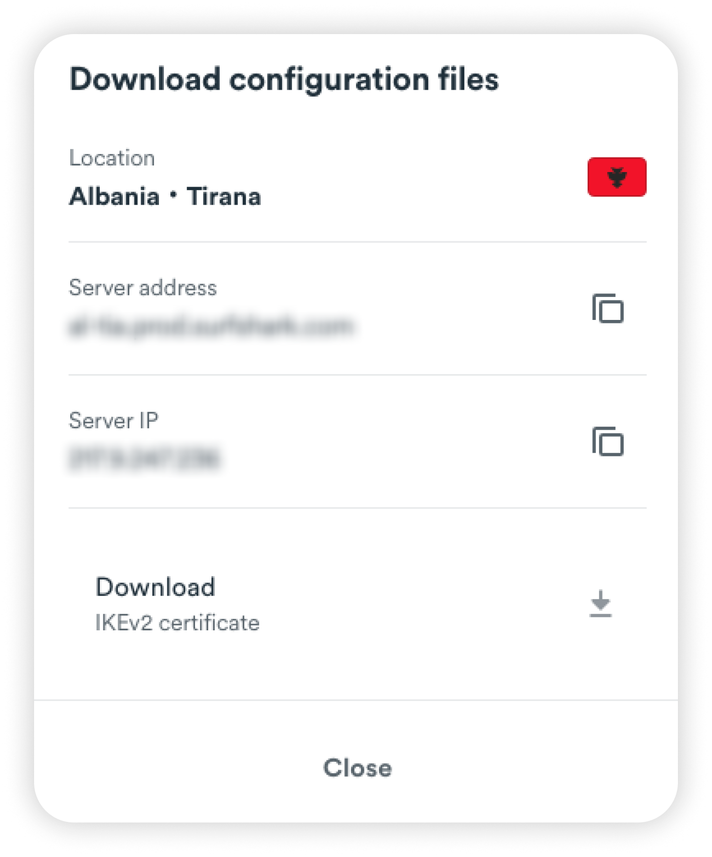 6. Scroll down to Other configuration files and locate the IKEv2 certificate. Click the download button to download the certificate file: