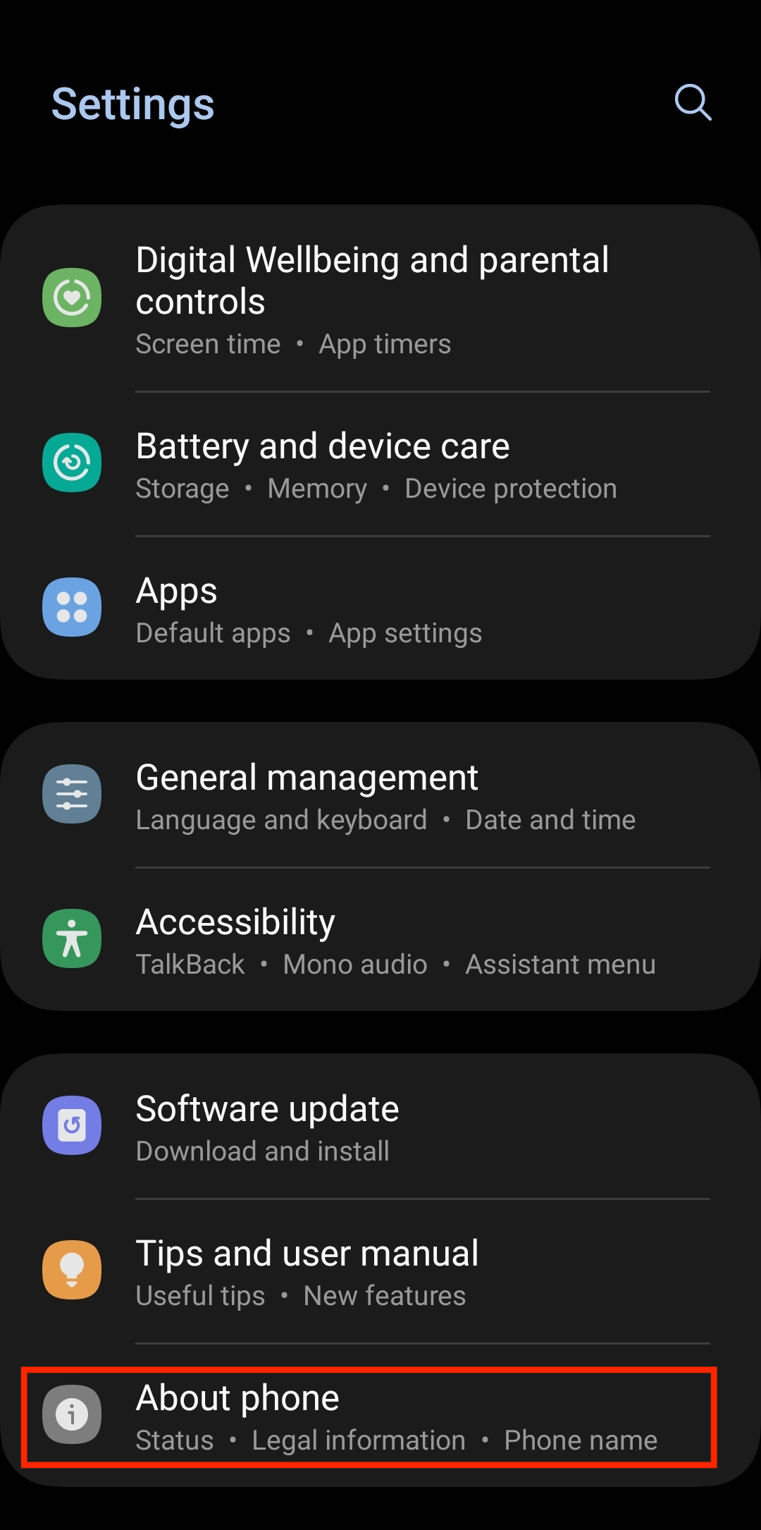 - Open Settings on your Android device and go to the About phone/About device section.
