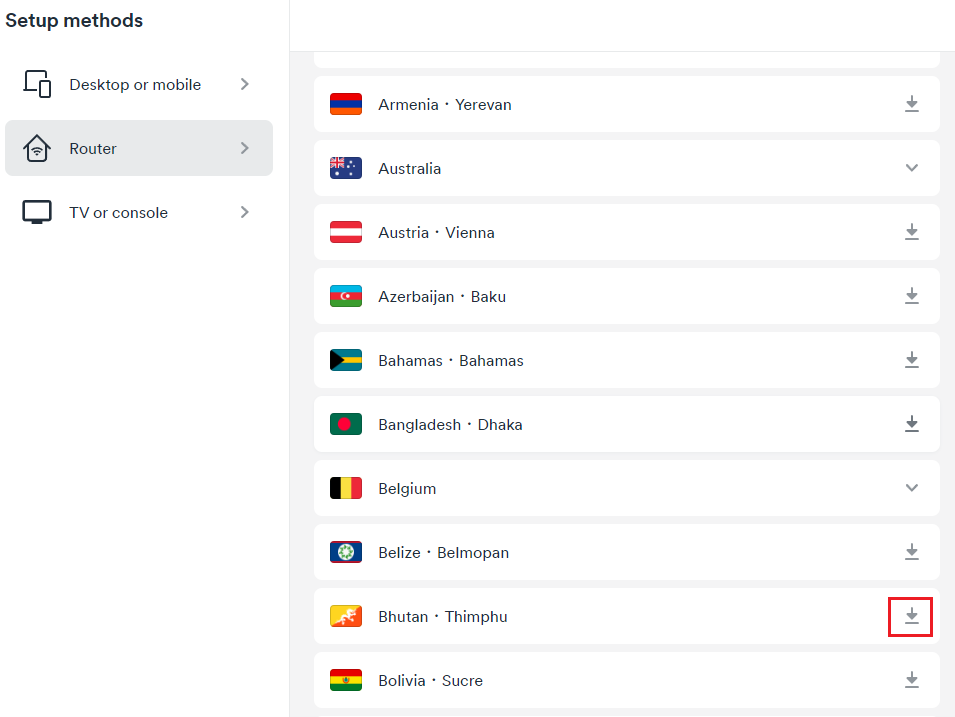- Click on the download icon to the right of the server name and click on Download UDP.