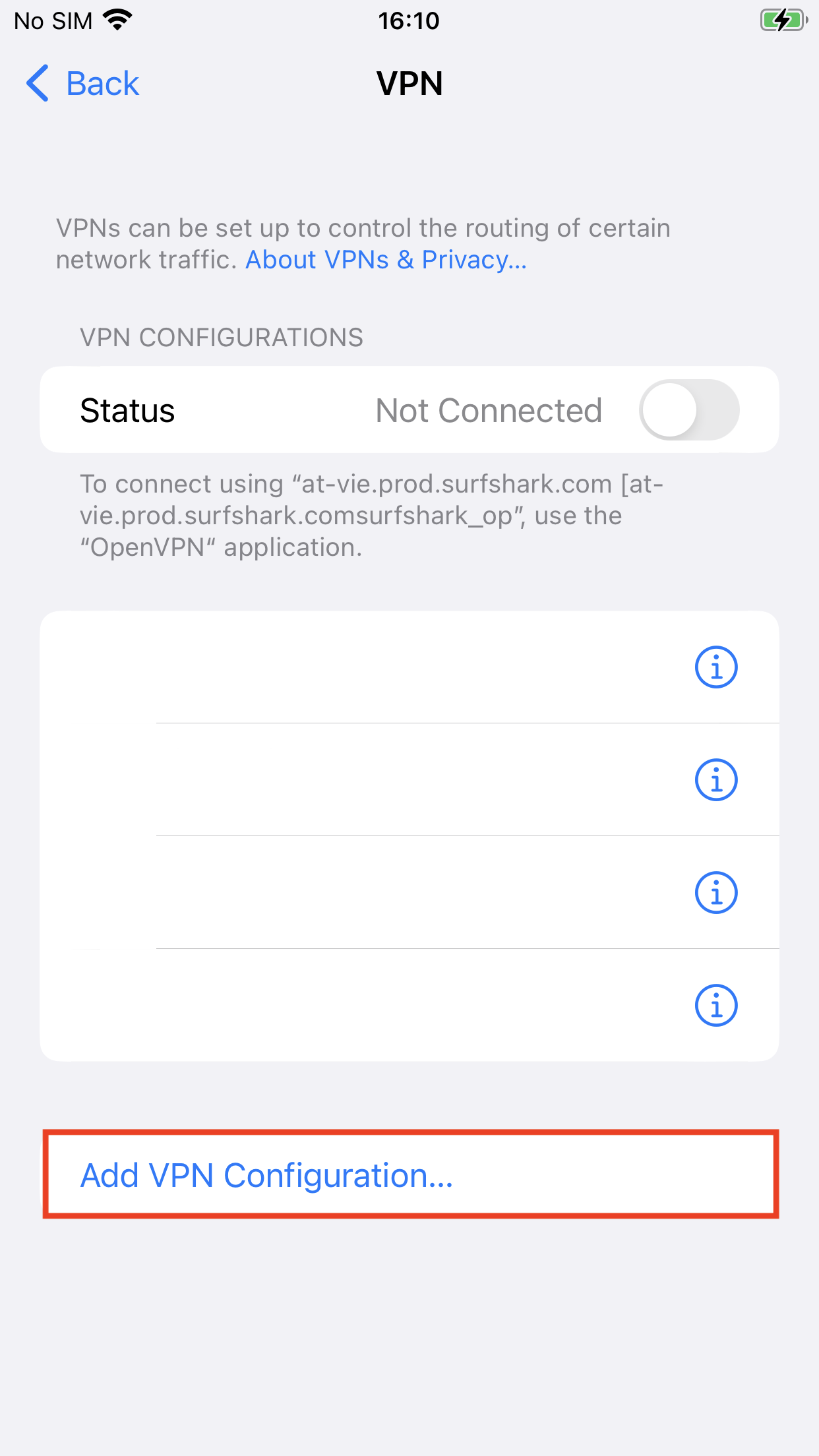 This is an alternative way of connecting to Surfshark servers that will come in handy if the Surfshark VPN app can not be installed on your iOS or it does not perform as expected.