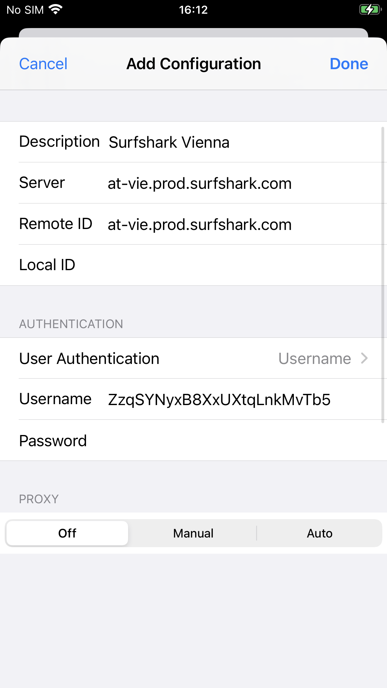 Username: Your Surfshark service username. Refer to the Get your credentials part of this article.