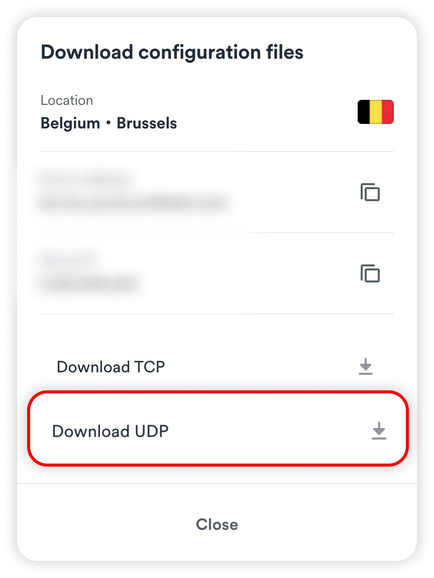 Navigate to the configuration file (refer to Choose a Surfshark server section in this article). Click on it, then click Open.