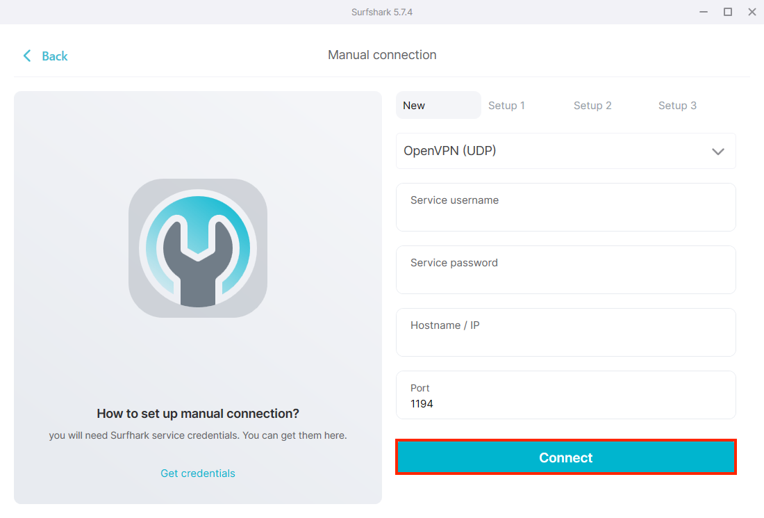 In this article, you will learn how to manually connect using the Surfshark Windows app.