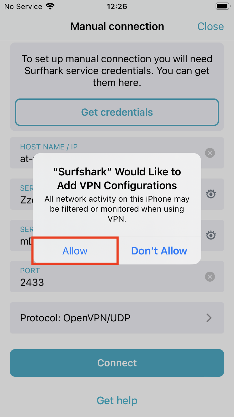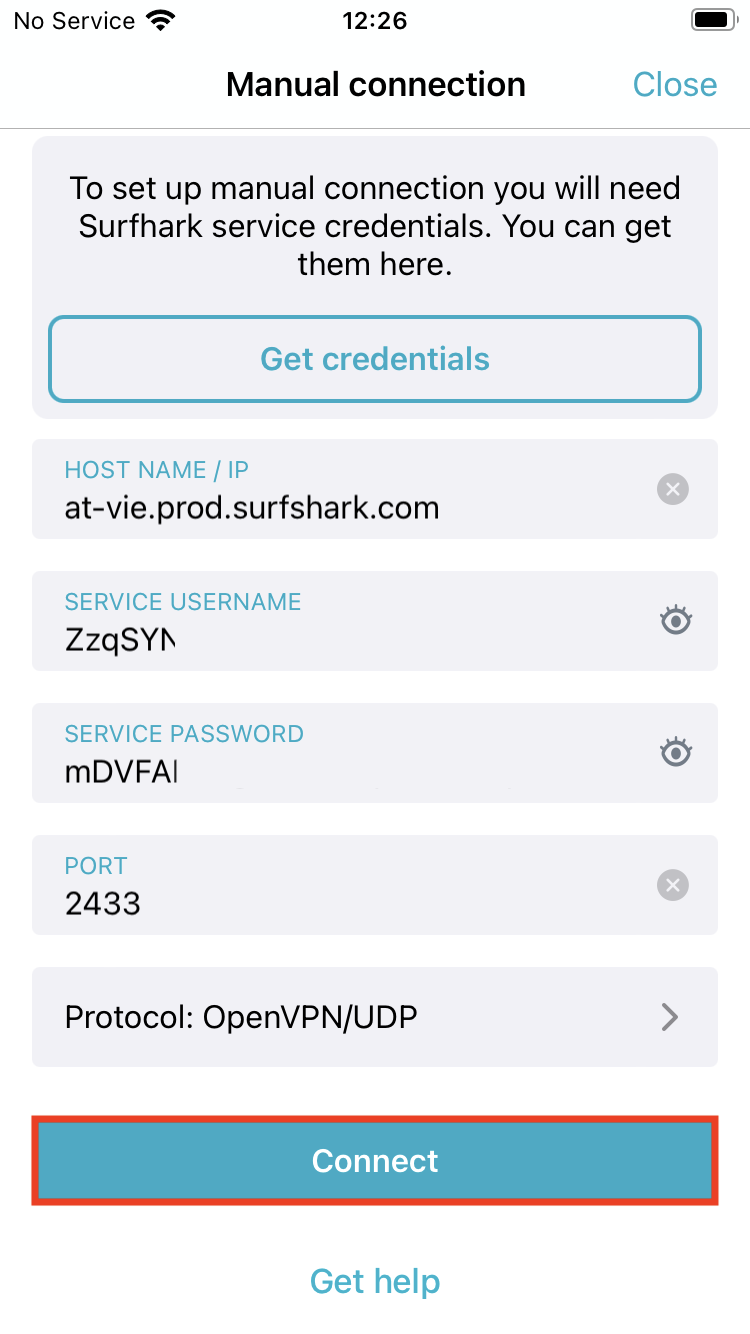 Configure the manual connection using the Surfshark app