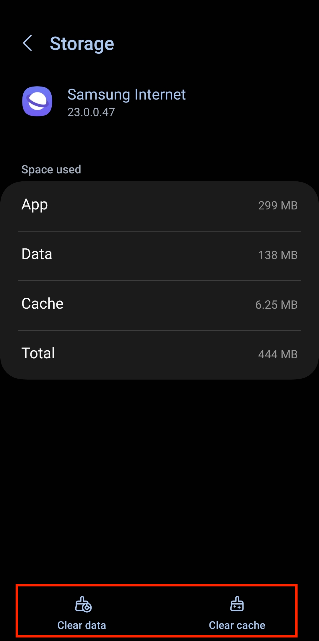 - Then tap Clear Cache to clear the cache of the application and Clear Data to clear any additional data that comes with the application.