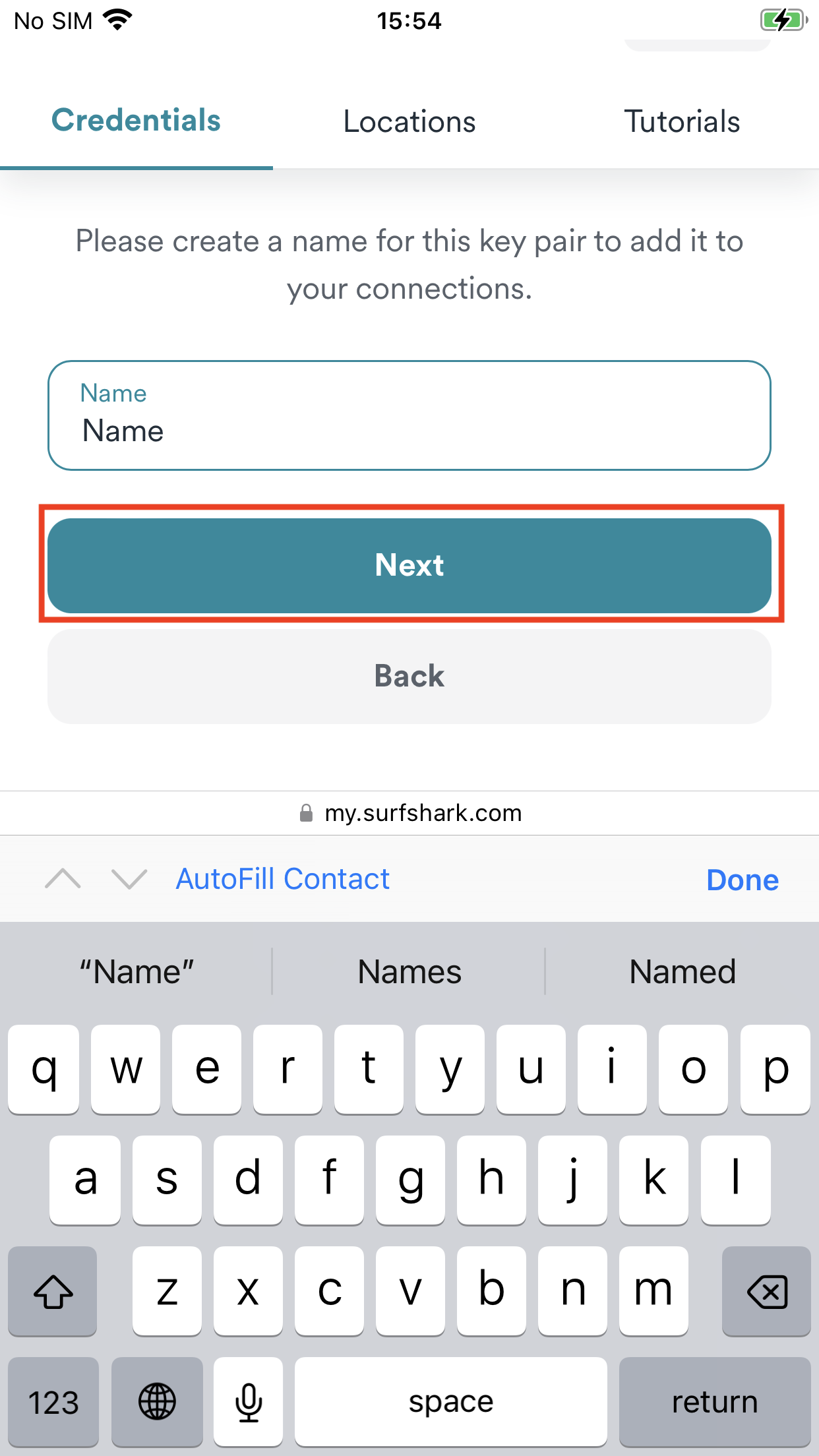 3. Enter a name for your public key and tap Next.